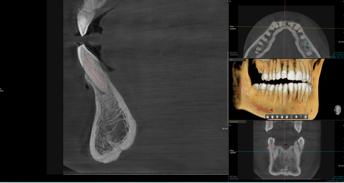 - Trodimenzionalna slika korenskih kanala, otkriva skrivene kanale i periapikalne lezije koje 2D snimak ne može prikazati.Polje snimanja od svega 5×5 cm znači ciljanu dijagnostiku. Snimak je gotov za manje od 10 minuta, uz AI asistenciju i digitalnu dostavu — bez zakazivanja.